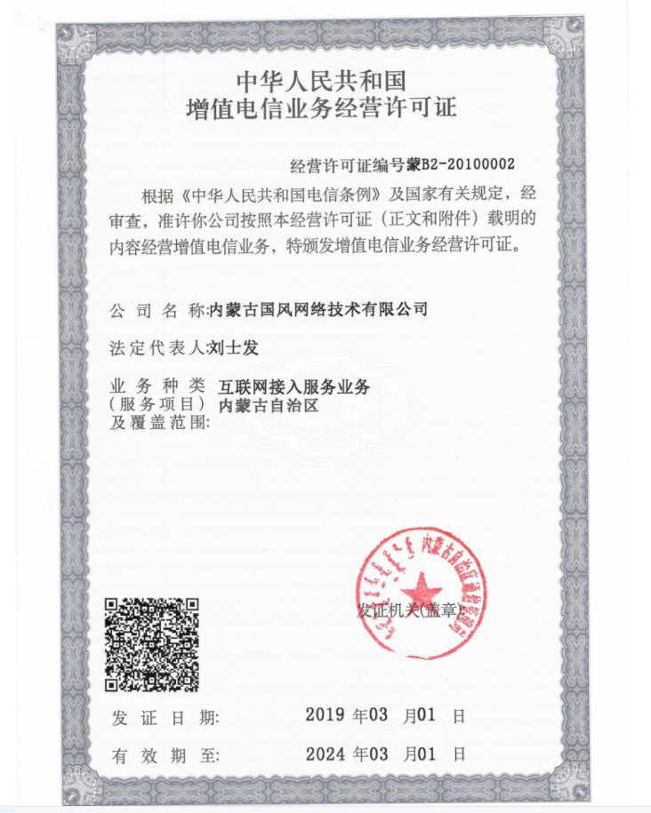 增值電信業(yè)務(wù)許可證蒙B2-20100002-【國風(fēng)網(wǎng)絡(luò)-20年專注】內(nèi)蒙古網(wǎng)站建設(shè)|內(nèi)蒙古網(wǎng)絡(luò)公司|內(nèi)蒙古軟件公司|內(nèi)蒙古手機(jī)網(wǎng)站|呼和浩特軟件開發(fā)|呼和浩特網(wǎng)站制作|呼和浩特網(wǎng)站設(shè)計(jì)|內(nèi)蒙古政采商城|內(nèi)蒙古政采商城開發(fā)|網(wǎng)頁設(shè)計(jì)|網(wǎng)頁制作|內(nèi)蒙古微信小程序開發(fā)|呼和浩特網(wǎng)站建設(shè)|呼和浩特網(wǎng)絡(luò)公司|呼市考試系統(tǒng)|內(nèi)蒙古考試系統(tǒng)|呼和浩特系統(tǒng)開發(fā)|內(nèi)蒙古微網(wǎng)站