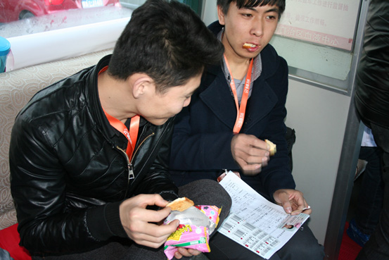 醫(yī)務(wù)人員隨時(shí)為大家準(zhǔn)備了飲用水和餅干供大家使用,用風(fēng)趣的解答緩解部分人的緊張情緒